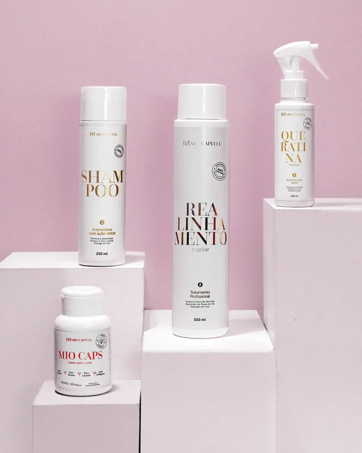 Os produtos da Mio Capelli são desenvolvidos para entregar resultado em todos os tipos de cabelo — do liso ao crespo, dos fios finos aos mais espessos.